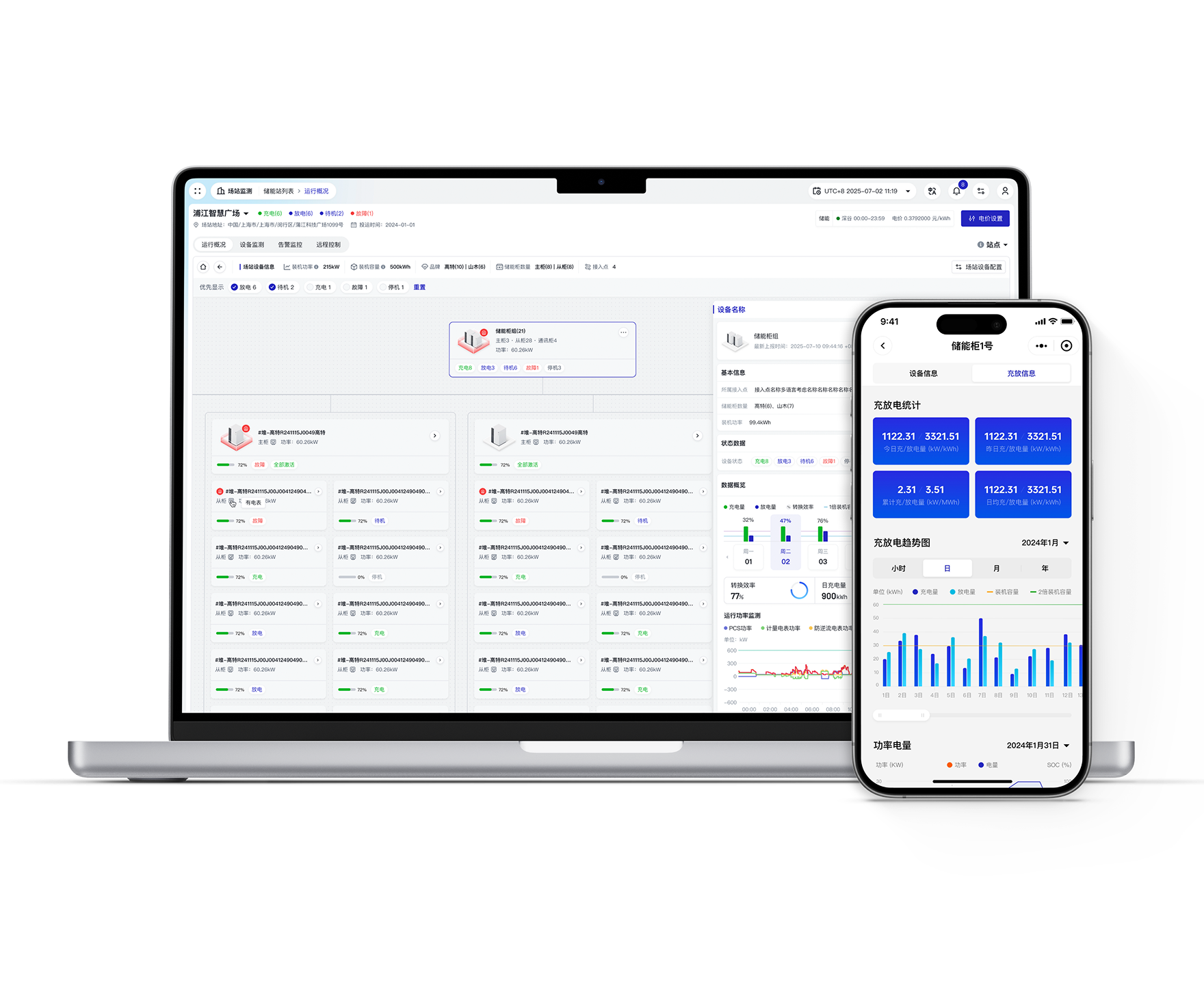 除了全方位的运营服务,我们还为您提供场站管理平台与移动端 App,直观呈现每个场站运行情况与账单内容,让您与业主清晰的了解运营数据,减少沟通成本,降低管理压力。