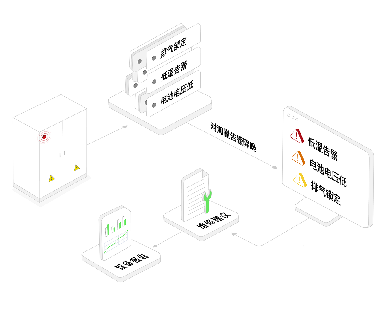 我们实时监测设备状态,并对海量告警进行降噪与解读,让您清晰了解告警背后的原因与潜在风险,从而决定下一步的应对措施,避免因故障停机而造成损失,系统性提升设备运行天数。