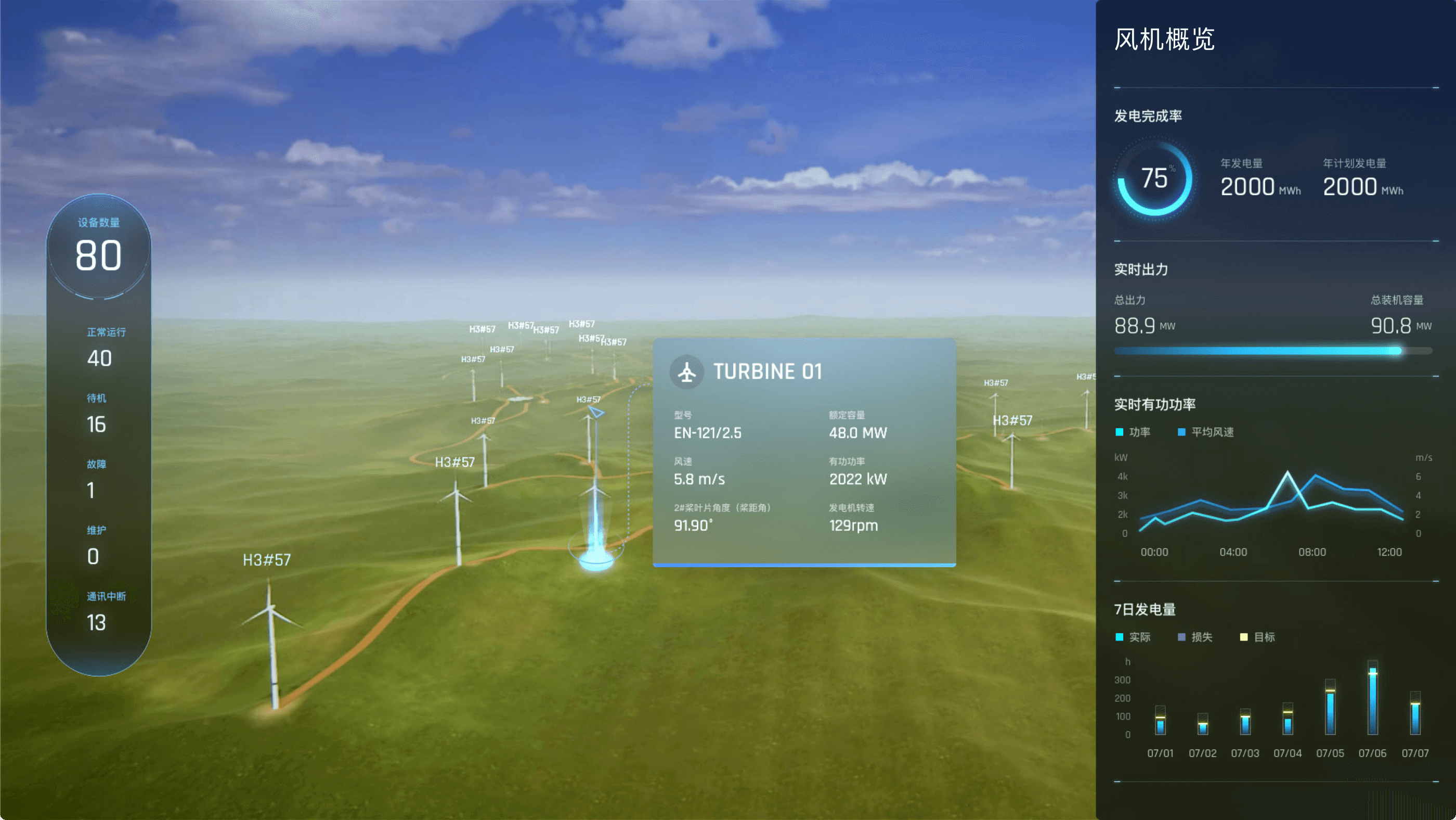 新能源管理平台,基于数字孪生的理念,集成资产概览、态势感知、设备等业务系统数据,结合三维仿真技术,创建虚拟数字孪生风场,实现对现实世界的全域感知、镜像再现,在数字…