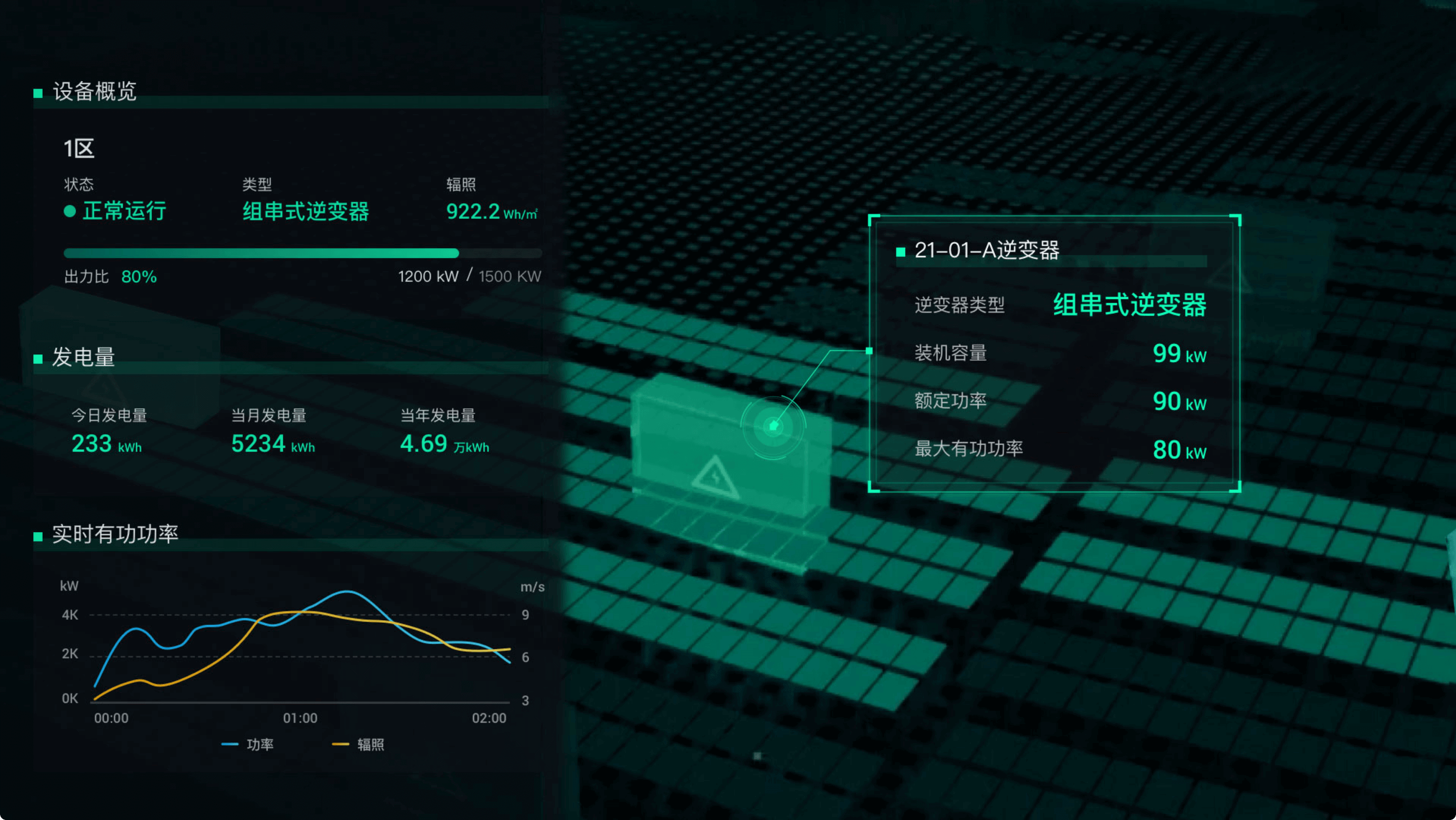 通过Unity三维可视化方案,构建从宏观到微观的精细化新能源管理平台。动态展示新能源场站全貌及设备内部结构,直观掌握场站环境,以设备点位为载体,动态实时显示运行数据,集成多…