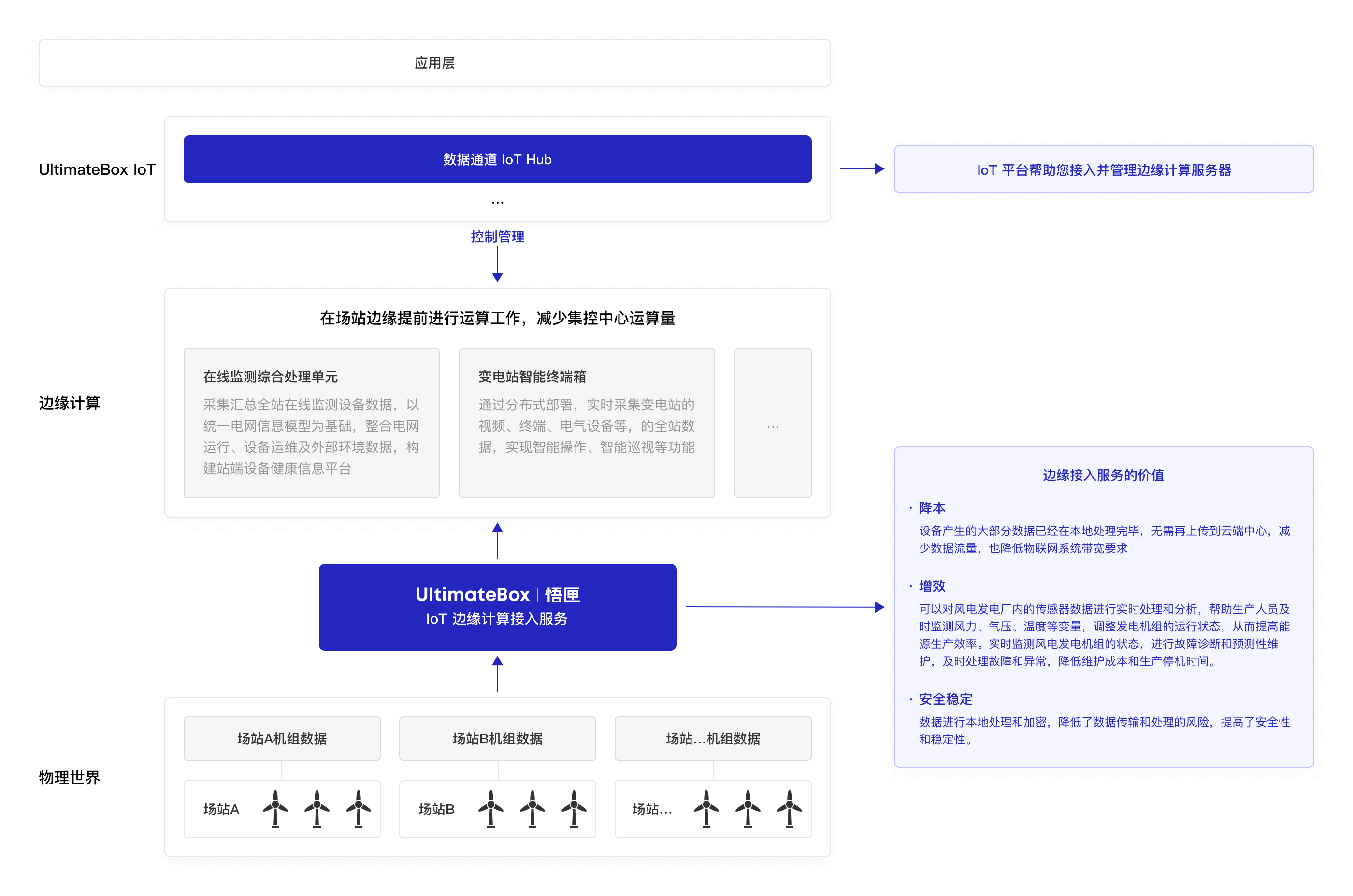 新能源集控中心设备多且分布广泛,这些设备送达集控中心的采集数据是海量数据,一座大型新能源电站数据点往往多达数十万点。如何保证采集数据的及时上送、不丢数、不卡数,并且保证集控中心系统能够流畅地处理并及时存储变化的海量数据及变位告警数据,对平台的海量数据处理能力提出了很高的要求。只有在完成快速有效的数据处理和存储后,才能够依据大量真实的数据基础进行设备的智能诊断分析。边缘计算意味着在集控中心端运行更少的进程,将这些进程移动到场站边缘服务器,这样有助于最大程度地减少带宽使用量和服务器资源消耗。